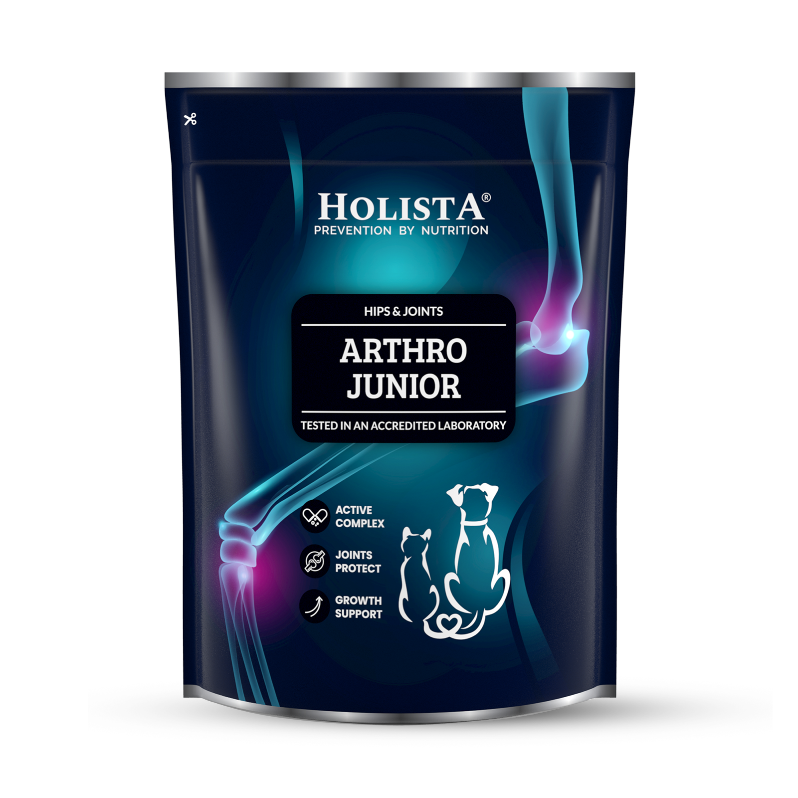 Arthro Junior Joint Supplement for Puppies and young dogs is an innovative dietary supplement for young and growing dogs that supports the proper development and functioning of the musculoskeletal system. It is recommended as additional dietary support for animals that have experienced abnormalities in the development of cartilage or are at risk of musculoskeletal problems during rapid growth (large and giant dog breeds).